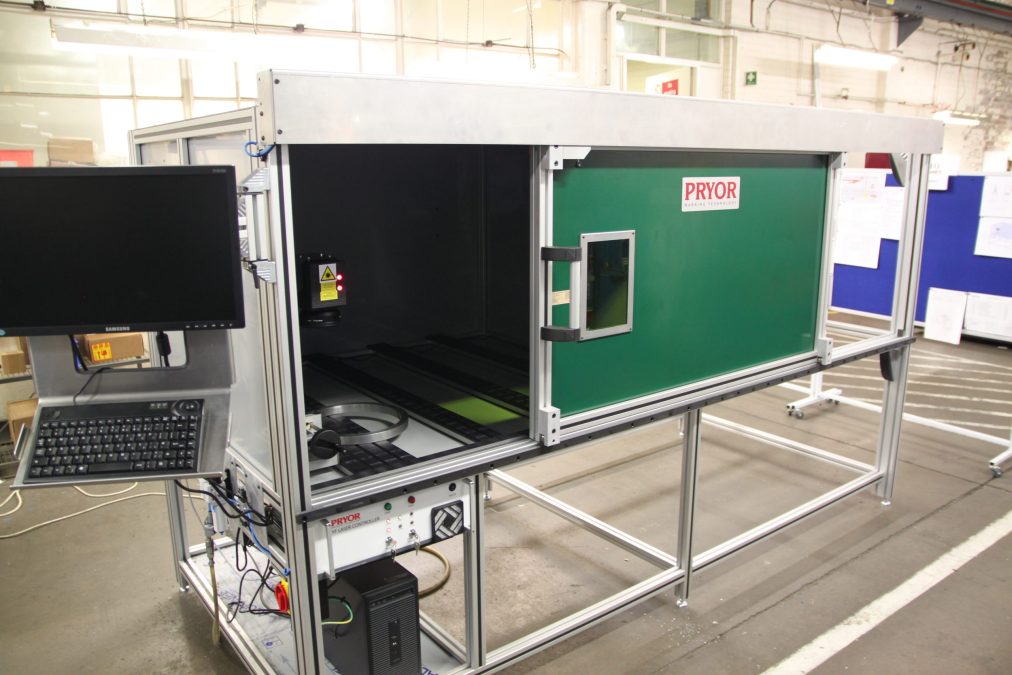 Our customer required a laser marking system for a variety of large components. We designed and built a suitable enclosure, enabling easy and accurate loading of a variety of components.