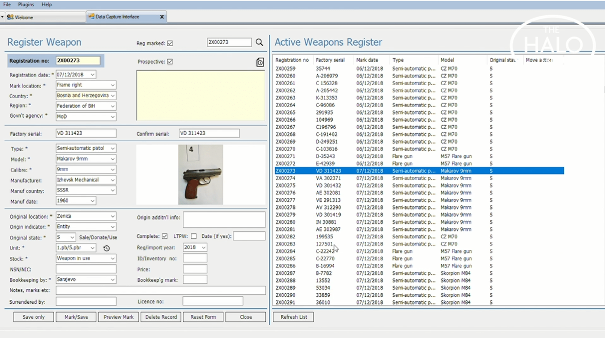 Through this relationship Pryor and Halo have worked together to develop a custom marking and traceability database that is now being used as a weapons management system to mark and register 62,000 weapons that have been stored in Bosnia and Herzegovina since the Balkan Wars of the 1990’s.